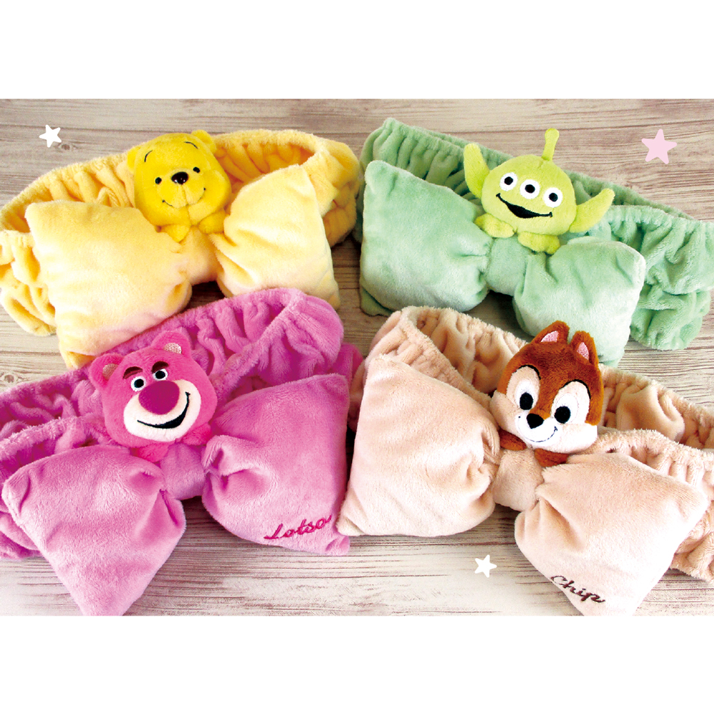 リボンヘアバンドの上からマスコットがちょこんと乗っているヘアバンドです。